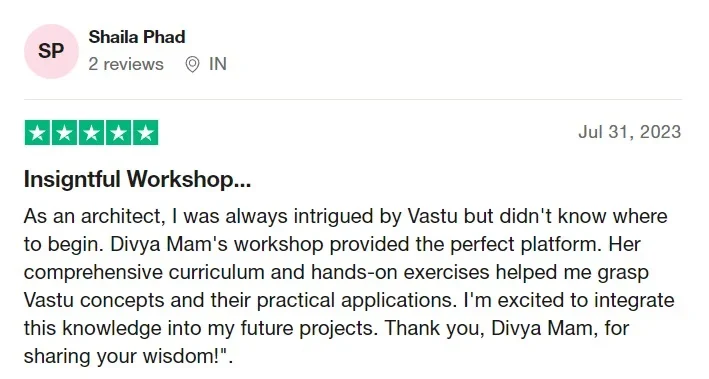 Having mentored more than 40k+ individuals, Divvya’s commitment to spreading knowledge led her to design a comprehensive 4-day Vastu Workshop.